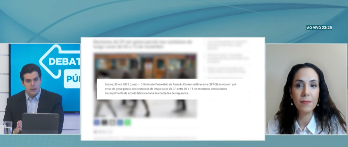 No dia 18 de novembro de 2025, a Dra. Adriana João Lomba, advogada da nossa sociedade, foi convidada a participar no debate televisivo promovido pela UniféTV, dedicado ao tema “Greve dos Transportes”.